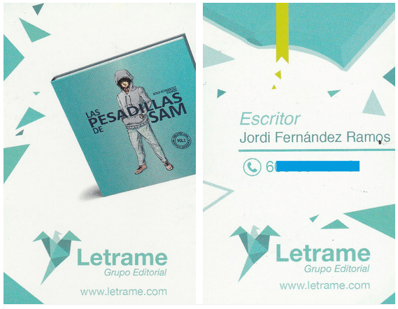 Un bonito detalle de la editorial fue regalarme una caja de estas tarjetas que todavía conservo ya que me da vergüenza dárselas a la gente