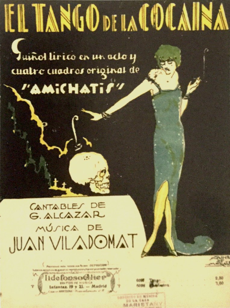 El tango de la cocaína era parte de una pieza teatral “Guignol en un acto”, de Amichatis, cuyo título era el mismo del tango, estrenado en el teatro Español de Barcelona, en octubre de 1926.